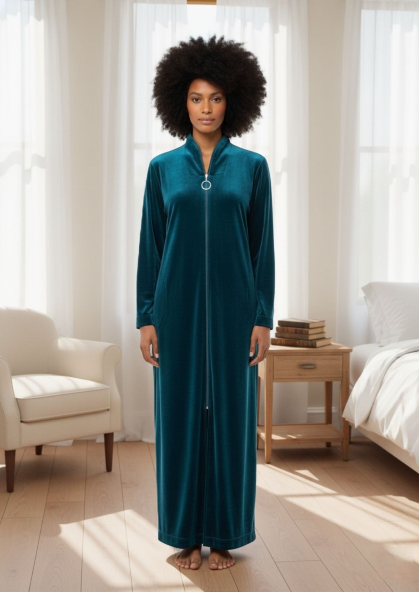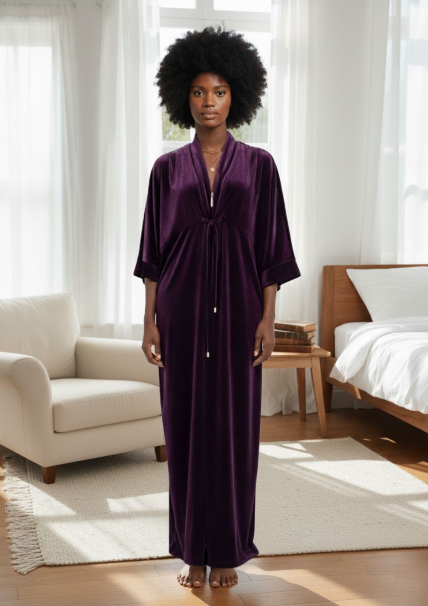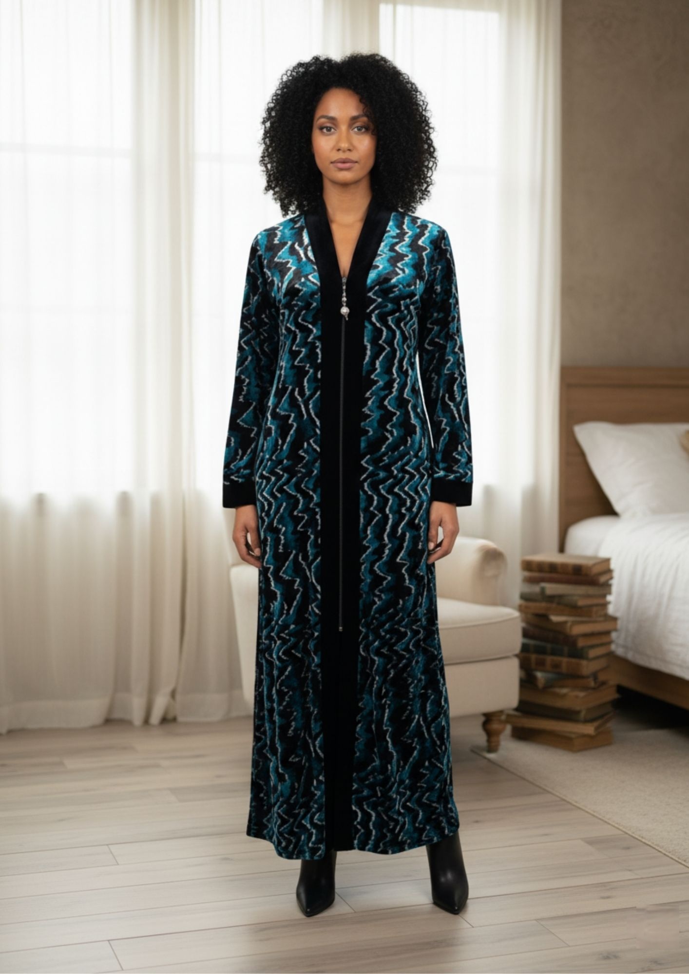 Diamond Tea – Printed Stretch Velvet Zip Caftan