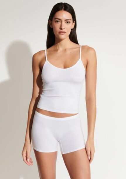With a deep neckline and adjustable straps, the tailored slip is a fan favorite! Hitting mid-thigh and providing the perfect foundation for your dress to have a beautiful drape. Constructed from luxe European microfiber with raw-cut edges, and finished with commando’s patented weighted hem to prevent ride-ups.