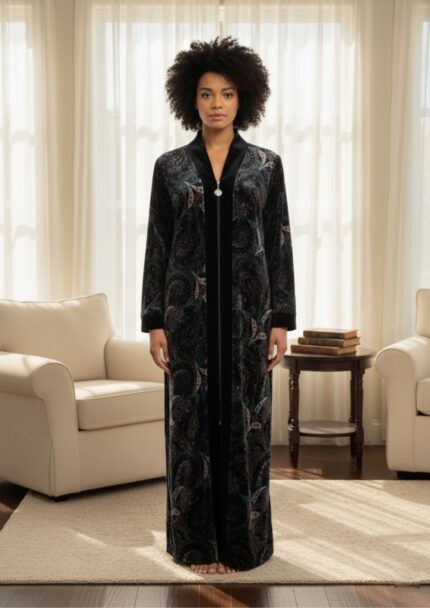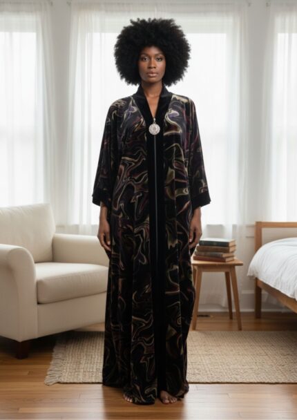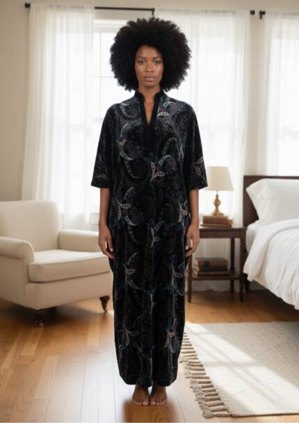 Diamond Tea – Printed Stretch Velvet Zip Caftan