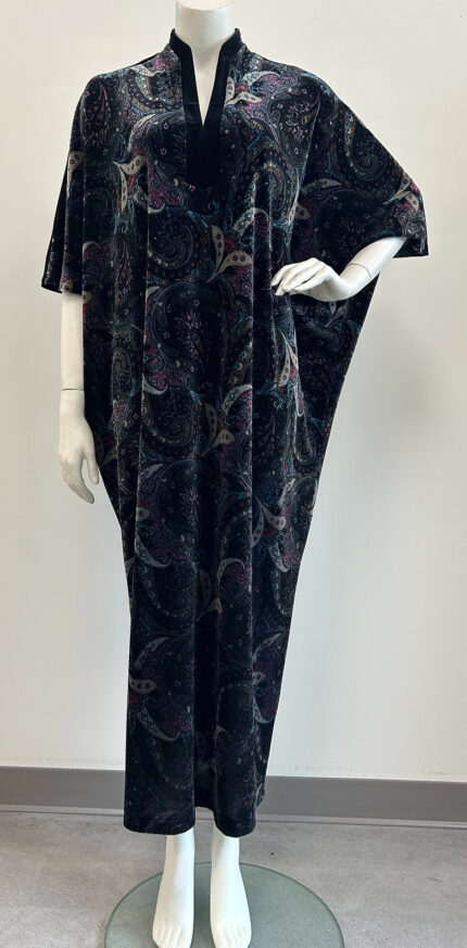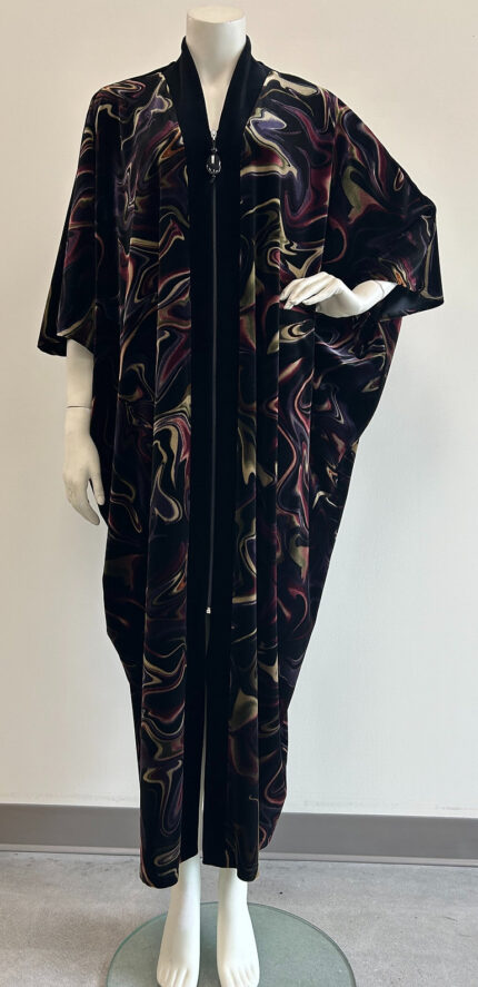 Diamond Tea – Printed Stretch Velvet Zip Caftan