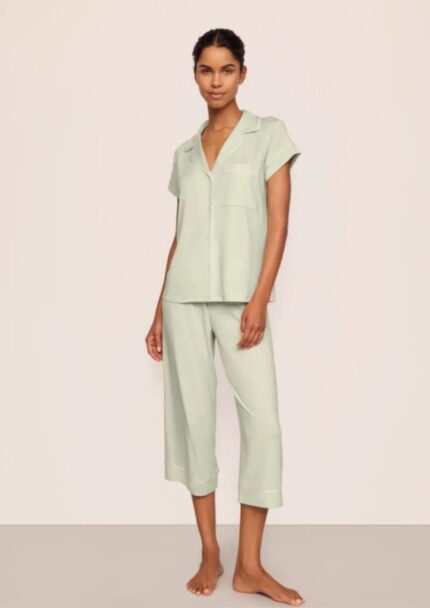 In the mid-2000s, we set out to create the world’s softest pajamas for a beautiful night’s rest. Gisele delivers, merging a classic men’s PJ silhouette with sustainable TENCEL™ Modal fibers. Our luxurious, temperature-regulating knit fabric drapes and falls in all the right ways, enveloping the body in comfort. Plus, it’s machine washable, and gentle on skin, so it not only feels beautiful but it’s easy to care for, too. Reach for the cropped set when you want a sharp, polished look or if you prefer an ankle-length pant.