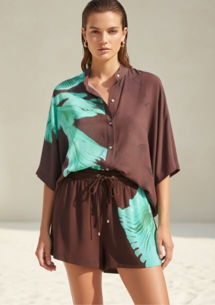 Emporio Armani – Organic-cotton pyjamas with T-shirt and shorts in a logo print