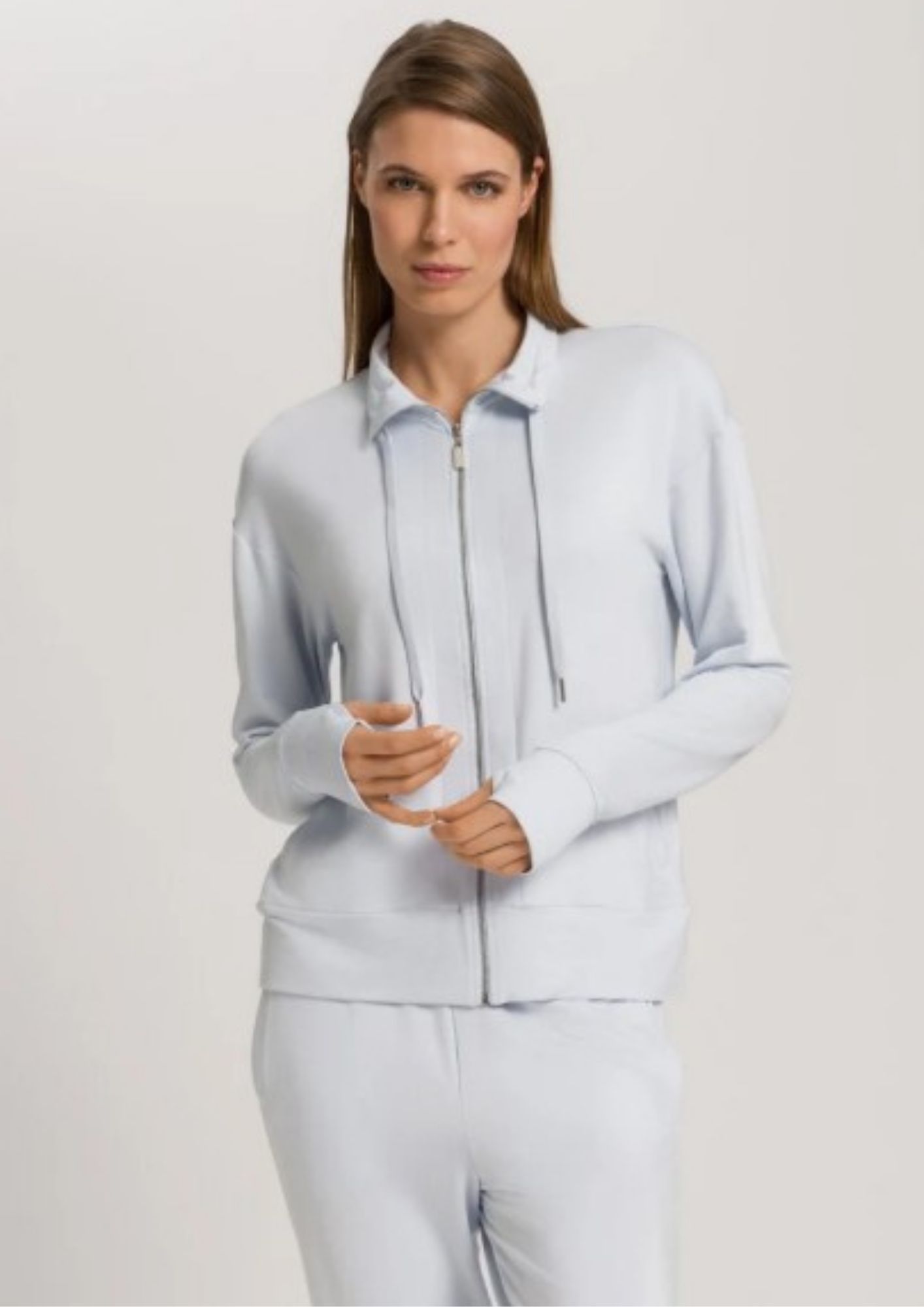 This HANRO jacket from the Balance line really lives up to its name: The soft French terry fabric and the pleasant cut ensure that this functional women’s jacket creates a sense of inner balance. It is very comfortable and ideal for soft sports, at home, in the office or on your travels. Pair it with the trousers from the same line to round off the look with a particularly successful sense of style.