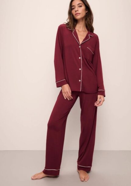 Natural Comfort defines sustainable luxury. Made from 100% TENCEL™ interlock which is breathable, with temperature-regulating and moisture wicking properties. It is light in weight, soft on the skin, and has a supple drape. Both the buttons and thread are made from recycled materials. The pajama is trimmed in a contrast piping detail on the sleeves, placket and hem. Experience this sensational night piece.