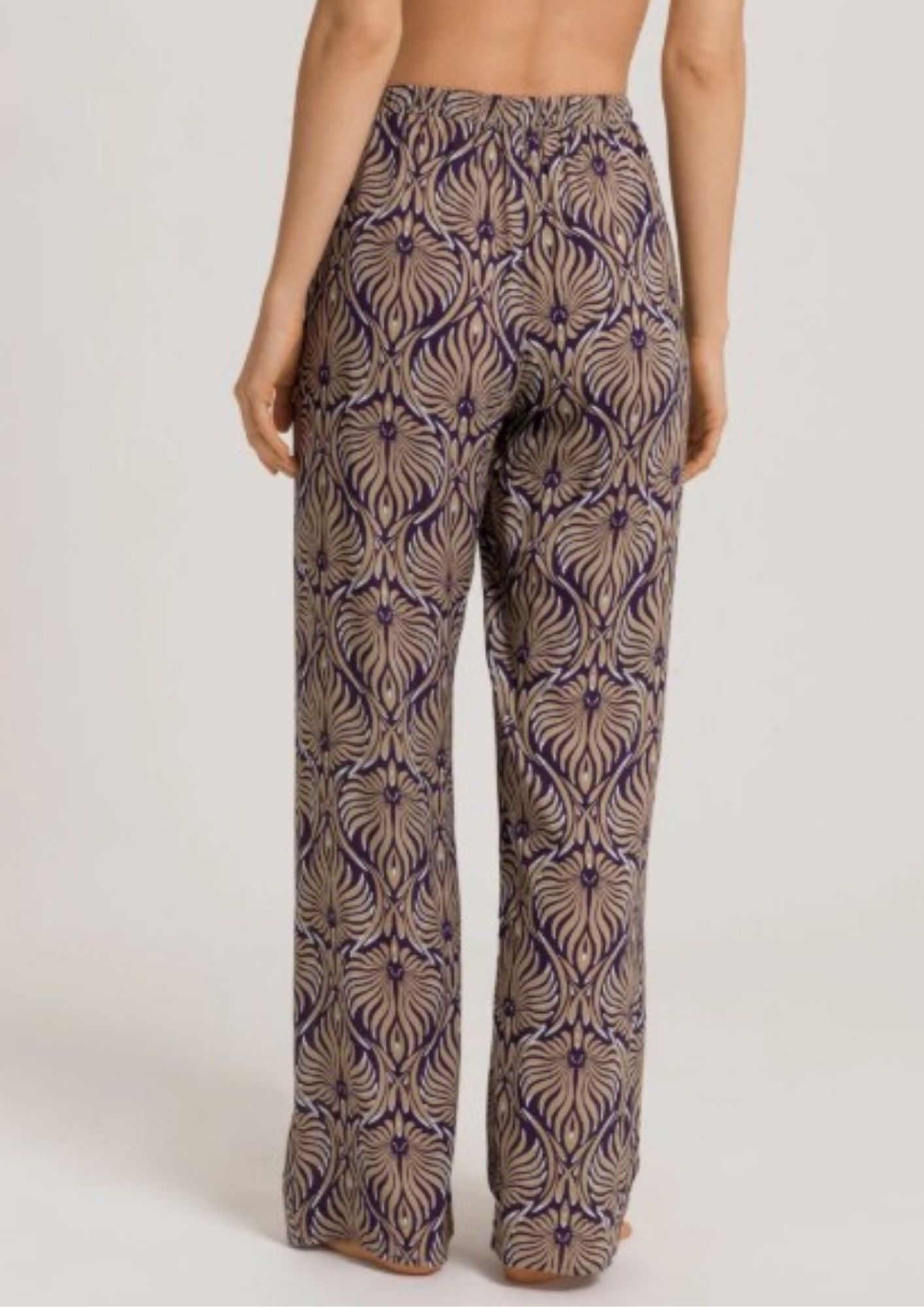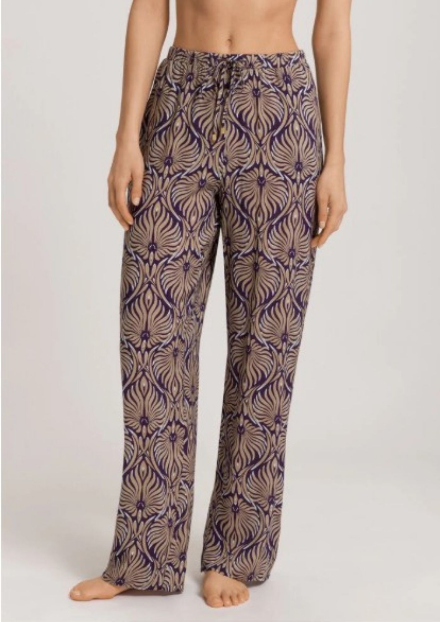 The unique motif of these woven trousers was created exclusively for HANRO by our in-house print designer. The supple fabric made from 100% woven viscose is just as special. They have a loose, straight cut for maximum freedom of leg movement. The elastic waistband with a drawstring and two practical side pockets also ensure individual comfort. There are many tops to match the long trousers, which can be combined according to personal preferences.
