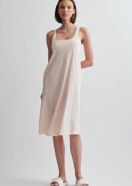 Fans of cotton will love this skin-friendly nightdress with half-length sleeves and V-neck. The simple yet stylish arc-shaped embroidery along the sleeves was created exclusively by our HANRO design team and manufactured in Vorarlberg. Thanks to a complex finishing process, the mercerised plant fibres have been made extra shiny, extra colourful and, above all, more durable. The timeless cut and pure and simple design make this nightdress a new classic. So you can enjoy this comfortable undergarment for twice as long!