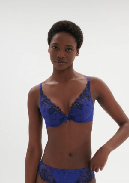 Under-wired triangle bra with a light plunge neckline look for the wearer.