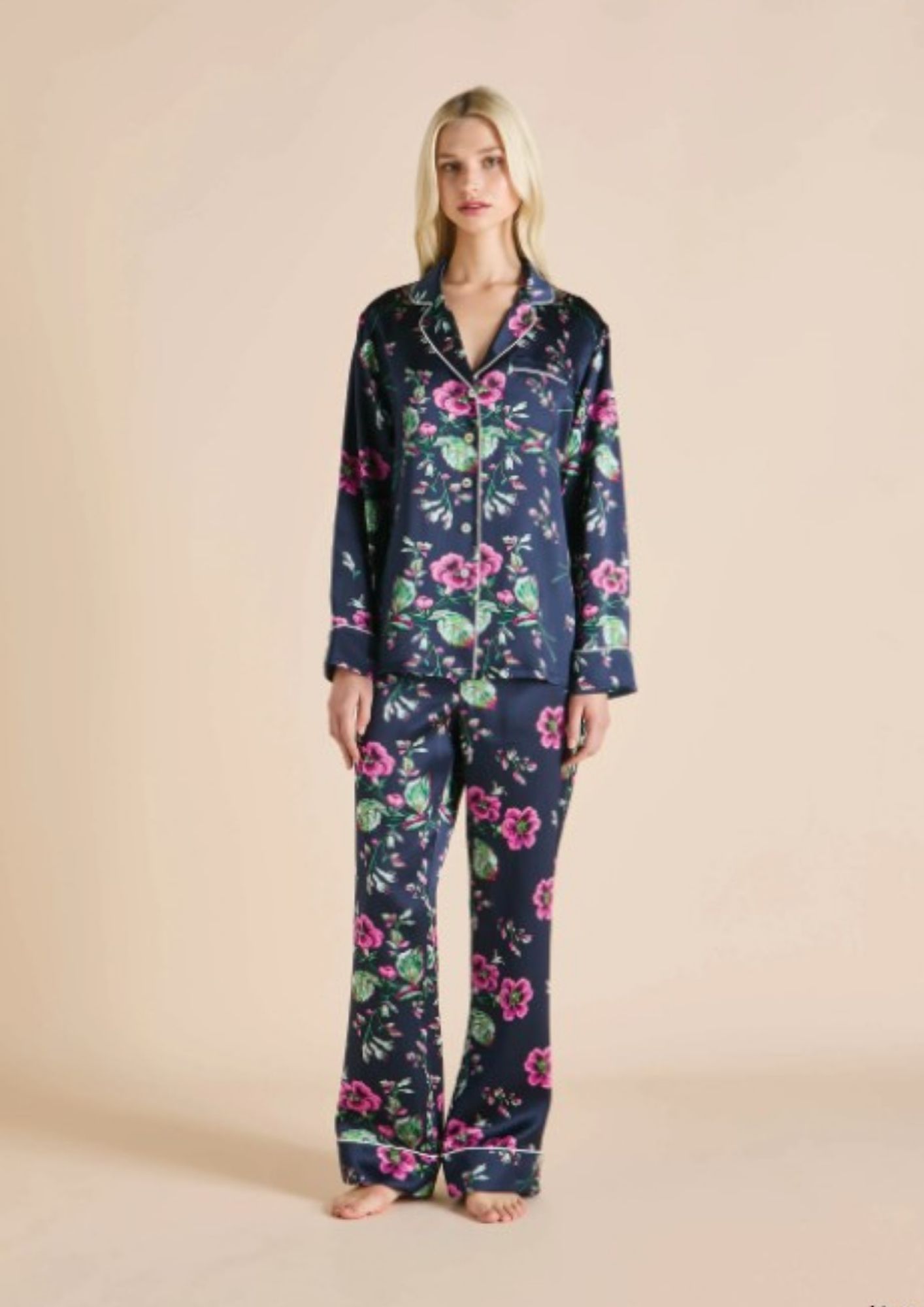 *Olivia von Halle – Silk Satin Floral Pajama