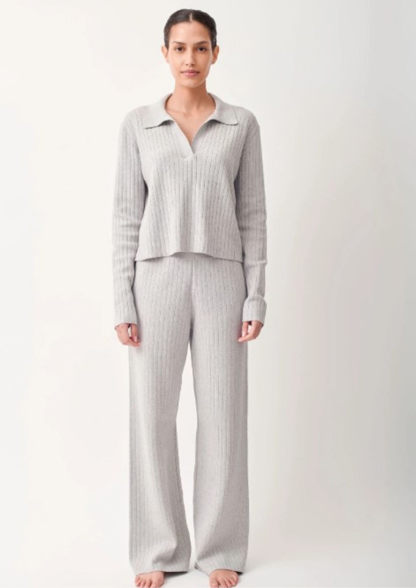 Super soft and cozy, this rib-knit sweater is all about laid-back comfort. It’s knit with a blend of warm, lightweight organic cotton and cashmere that has a cloud-like feel. Featuring a classic polo collar, open placket and drop shoulders, it has a perfect slouchy, relaxed fit for an easy throw-on-and-go look.