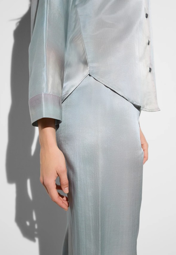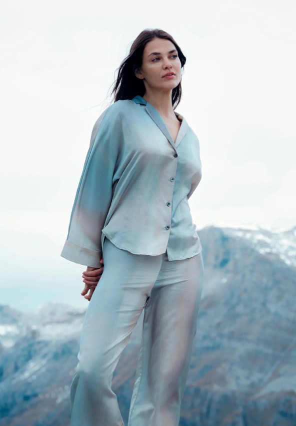 Wonderfully woven quality, with the comfortable cotton side directly against the skin, while the silk on the outside shines with its subtle lustre. The modern interpretation of the authentic seasonal print and the classic, loose cut make a perfect pair. Take your sleep to the next level with the long women’s pyjamas with mother-of-pearl buttons from the Cotton / Silk line.