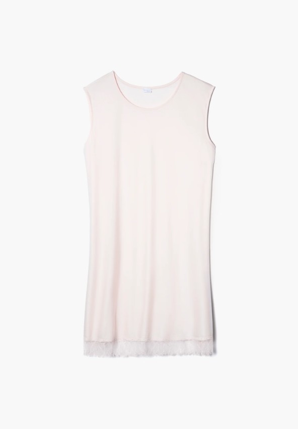 Sea Island cotton is the world’s most exclusive cotton. Hand-picked in Barbados, knitted in Switzerland. Those who love the finest private luxury will be delighted by Sea Island’s ultra-soft Caribbean touch and long-lasting silky lustre. Clean lines with sensual details. The sleeveless women’s nightdress has a round neckline. The hem is decorated with luxurious, wide lace details. The fit is loose and comfortable. The sleeveless nightie for women from the Sea Island line is made from the highest quality cotton. A cotton plant grows in the holiday paradise of Barbados, whose fibres have a unique and particularly rare quality. Knitted with passion in Switzerland and sewn by hand, these styles feel indescribably comfortable and natural against the skin.